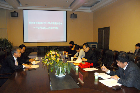 潘鲁生院长对俞普善副校长一行来访我校表示欢迎,他指出,自山东工艺美术学院与韩国大庆大学签署合作协议以来,两校在选派教师互访、学生访学、开展学术交流活动等方面取得了显著成果。
