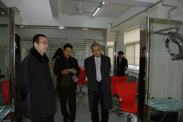 潘鲁生院长陪同俞普善副校长一行考察了我校妆扮艺术设计工作室。