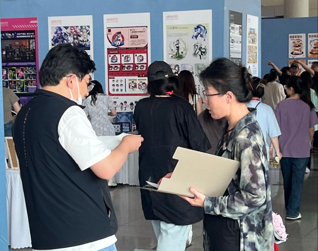 建筑与景观设计学院联合策展人、院长李文华:首先组建专项工作专班,专班主要由党政班子全体成员、各教研室主任、学术委员会成员、教学委员会成员、室内设计专业部分老师组成。其次,设定本届博览会整体定位、工作目标,并以项目管理的方法实施全过程工期倒排,有序推进专项工作。将本次博览会定位为济南市乃至山东省区域艺术设计盛事的展览,分为主场展览和卫星展两个系列。主场展览以舜耕会展中心和学校美术馆为场域,全面展示各专业教学成果,尤其突出服务社会经济文化发展的几个大板块—乡村振兴、城市更新、智数生活、文化传承、适老助残。卫星展结合作品深入乡村、社区举办,比如乡村振兴版块的专题展览于5月14日在长清区双泉镇神秀谷顺利开展,深受广大镇村干部欢迎,被各大媒体争相报道。另外,强化展览的历时性、动态性,努力使展览由静态转向动态,将展览提升至展事活动,使展览的效益最大化。展览设计伊始就在场地及设施设备的配套方面进行了预设,方便展览期间持续开展现场教学、专题教研、就业洽谈、项目对接、院校交流等活动。