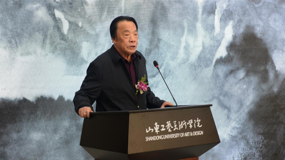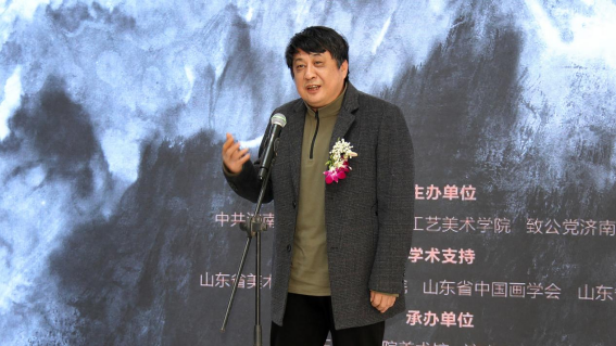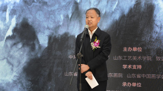 山东工艺美术学院副院长董占军代表学校对本次开幕式表示衷心的祝贺,向各位来宾,表示热烈的欢迎。他指出,吴建军先生的艺术创作,富有多元探索、情景交融的鲜明性格。他的水墨元气淋漓、满纸烟云,既大气挥洒,又细腻氤氲,用心构图,墨彩自如,可以说是厚积薄发、匠心独运的优秀之作。本次展览,是吴建军从艺以来最全面的一次回顾展览,全面梳理了30年来的水墨创作和观念系统的转变历程。展览包括绘画、手稿等多种形式的近200件展品,以4个展区6个单元全面而立体地展示其丰富的创作历程和艺术探索,体现出吴建军先生30年来的创作宗旨和执著追求,那就是——以描绘时代风貌、凝聚精神力量的美术作品奉献于当代人的精神生活。今年10月,山东工艺美术学院将迎来50周年校庆。回顾50年,校友是学校最为宝贵的财富和资源。广大校友见证了母校建设与发展的奋斗历程,代表了母校人才培养与学科建设的质量水平,传承了大学文化和校训精神,为艺术创新和社会发展做出了自己的贡献。母校永远是校友们的精神家园,校友永远是大学的骄傲名片!
