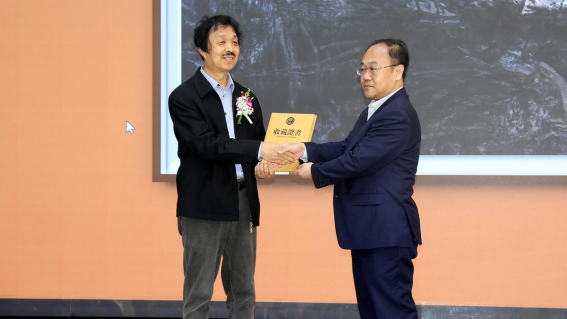 山东工艺美术学院副院长董占军为捐赠者颁发收藏证书
