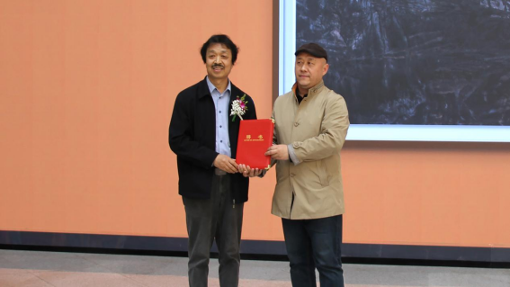 山东工艺美术学院造型艺术学院院长刘宁为捐赠者颁发聘书