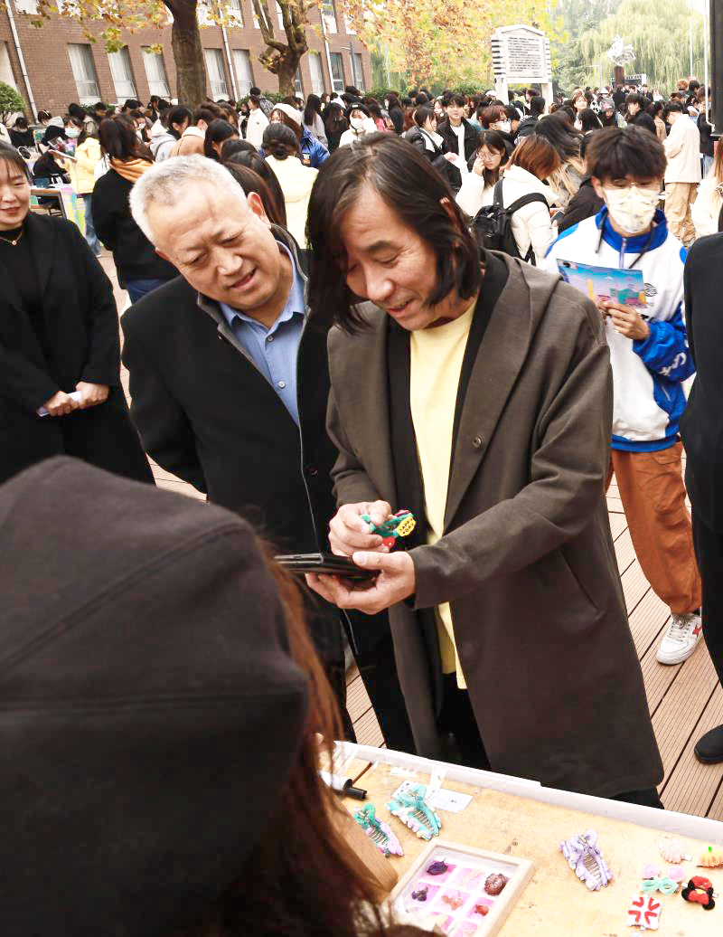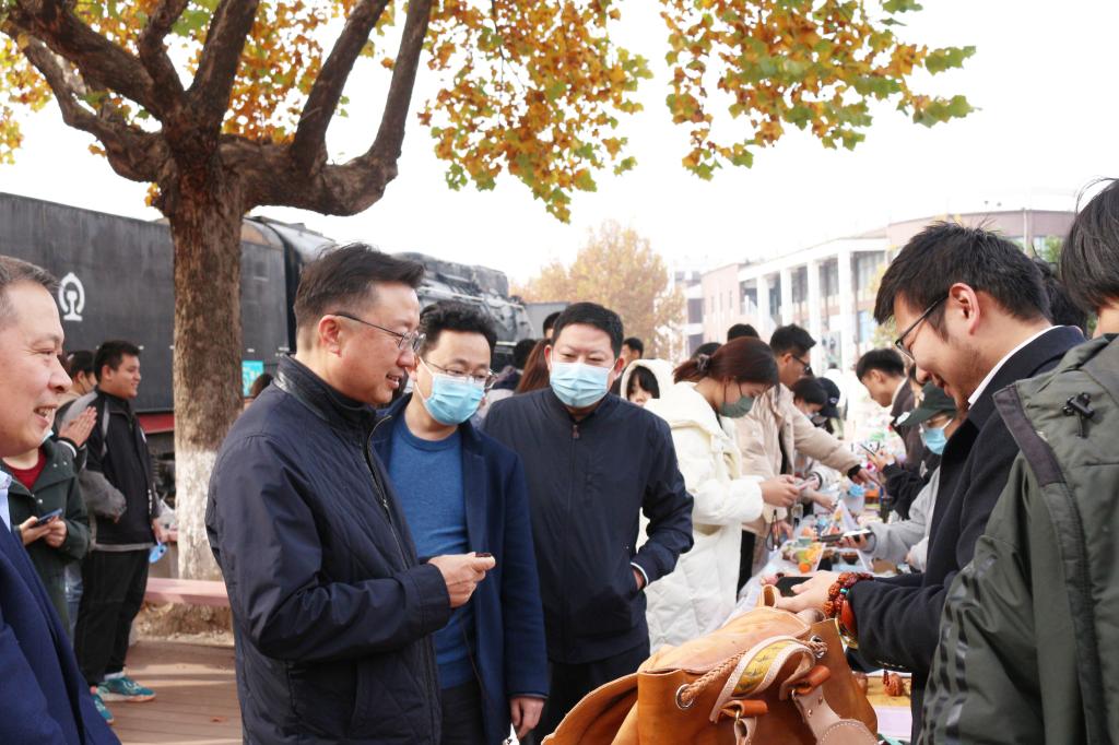 为深入学习宣传贯彻党的二十大精神,弘扬传承优秀传统文化,搭建手造交流平台,11月16日,山东工艺美术学院第十四届手造集市在长清校区设计师广场开市,党委书记何思清,党委副书记苗登宇,副院长张艳霞,纪委书记苗新民,副院长韩世春,党委委员、宣传部部长韩文涛,党委委员、组织部部长许磊参加活动。