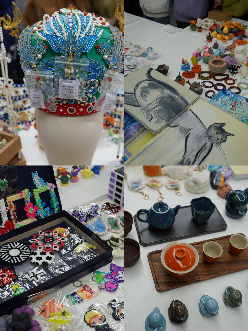 别出心裁的服饰设计,天然无瑕的玉石古玩,传统与现代结合的创意茶盏……集市包含了服装、建筑、书法、陶瓷、银饰等各类手造实践,以及“手造”的更广泛的多元化表达物品。传统工艺融入时尚元素,不仅能带来手造文化的艺术熏陶和视觉盛宴,还突出展示了一批传承传统工艺的创意作品,充分展现了学校的专业特色和我校大学生的创新意识。活动吸引了大批在校师生,大家饶有兴致地挑选心仪的匠心好物,体验别样的文化创意之美,感受中华优秀传统文化的魅力。