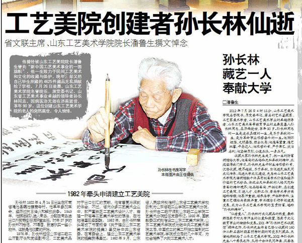 2012年7月26日4时15分,山东工艺美术学院名誉院长、原党委书记,著名的艺术鉴藏家、工艺美术学者,山东工艺美术事业的卓越领导者、山东工艺美术高等教育事业的主要奠基人孙长林同志,在济南逝世,享年90岁。孙长林同志的一生是追求真理的一生,是乐于奉献的一生,是为革命事业艰苦奋斗的一生。他胸怀坦荡,光明磊落,顾全大局;他德高望重,德艺双馨,平易近人;他艰苦朴素,严于律己,淡泊名利;他坚持原则,公道正派,一身正气。
