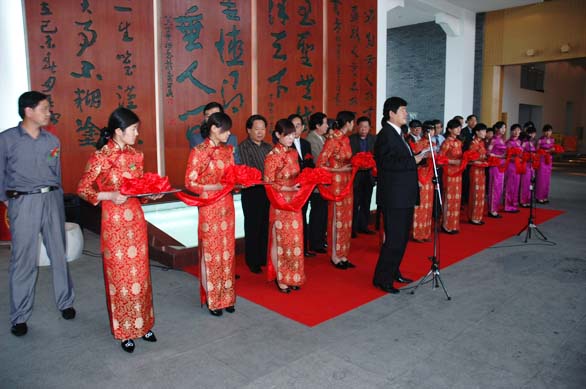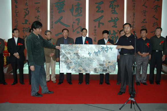 上午十时整,捐赠仪式在人们渴盼的雨声伴奏下如期举行,山东省人大、省政府的领导刘仲泉、王春涛、王章记、李锡禄,山东工艺美院的领导郭兆志、李世平、王秀存,聊城市的领导李望尘、白伟明等为活动剪彩。我国著名画家山东工艺美术学院郭志光教授讲话,高唐县常委副县长刘萍致辞,高唐县的领导朱茂明、方玉庆等出席,捐赠仪式由高唐县委宣传部部长聂磊主持,高唐县文体局、高唐县文联等各局的领导及部分书画爱好者冒雨参加了此次活动。