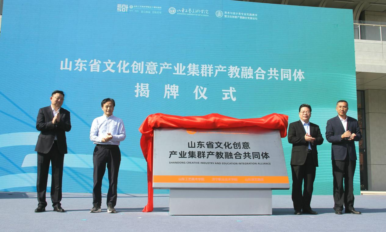 陈建兵、高广立、于剑、韩世春为山东省文化创意产业集群产教融合共同体揭幕。