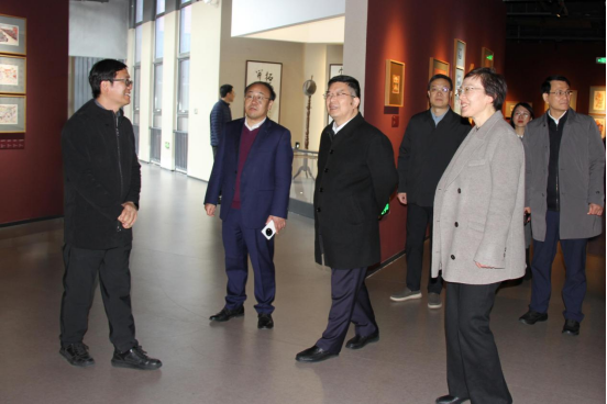 调研期间,陈平一行先后参观了学校民艺博物馆、孙长林艺术收藏馆和文化创意产业园(国家产教融合基地),了解学校在民间文化保护传承、学科专业对接产业发展、创新艺术设计人才培养模式等方面的工作成效。